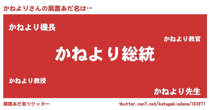 | 意味不明あだ名 | 『自称かねより』『永久保存かねより』 |
