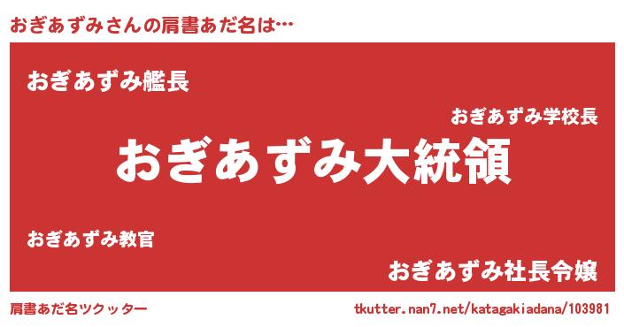 | 女子向けラノベタイトル風あだ名 | 『おぎあずみの雑貨屋さん』 |