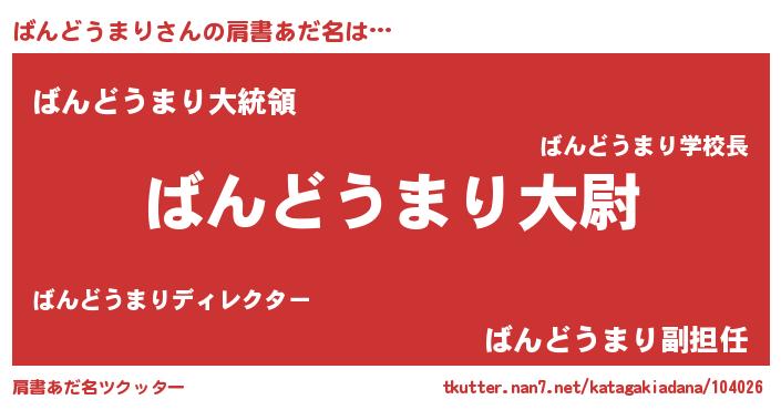 | 男性向けラノベタイトル風あだ名 | 『ばんどうまり~年齢イコール彼女いない歴の魔法使い~』 |