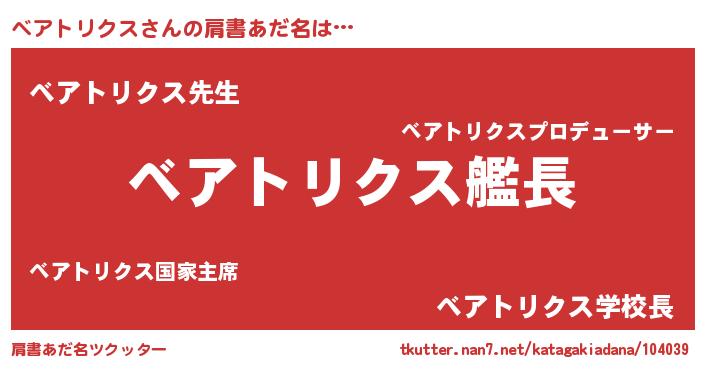 | 胡散臭い通販商品みたいなあだ名 | 『来世でも幸せになれる健康食品…その名も「ベアトリクス」』 |