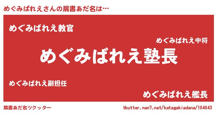 | 欧米人風あだ名 | 『ウサインめぐみばれえ』 |