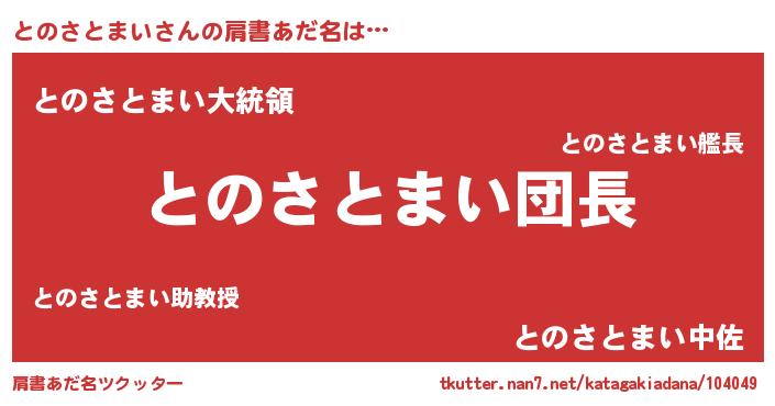 | 胡散臭い通販商品みたいなあだ名 | 『信頼と実績のサプリメント…その名も「とのさとまい」』 |
