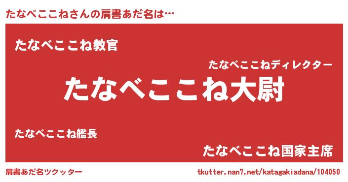 | 男性向けラノベタイトル風あだ名 | 『たなべここね~年齢イコール彼女いない歴の魔法使い~』 |