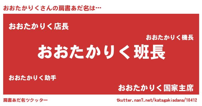 | 欧米人風あだ名 | 『ウサインおおたかりく』 |