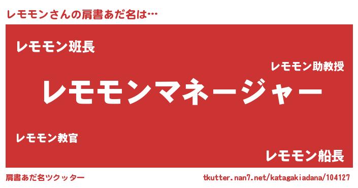 | 意味不明あだ名 | 『とにかく怪しいレモモン』 |