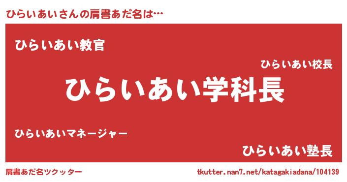 | ヒーロー風カッコイイあだ名 | 『慈愛の使者ひらいあい』『仮面ヒラダー』 |