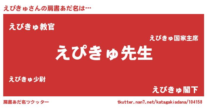 | 女子向けラノベタイトル風あだ名 | 『えぴきゅの契約王妃』『闇のえぴきゅ』 |