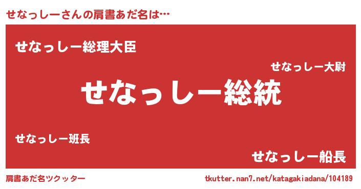 | 男性向けラノベタイトル風あだ名 | 『Re:せなっしーから始める異世界生活』 |