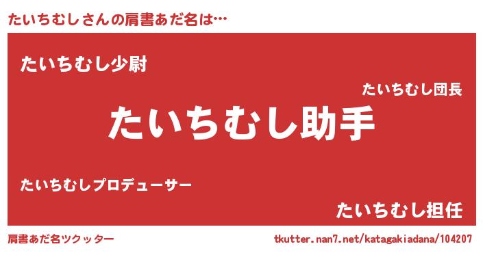 | ヒーロー風カッコイイあだ名 | 『慈愛の使者たいちむし』『天弓騎士タイ』 |