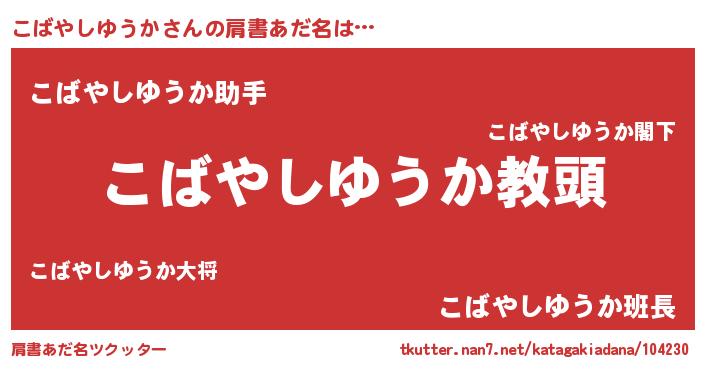 | 意味不明あだ名 | 『永久保存こばやしゆうか』 |