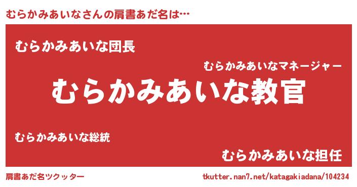 | 男性向けラノベタイトル風あだ名 | 『この素晴らしい世界にむらかみあいなを!』 |