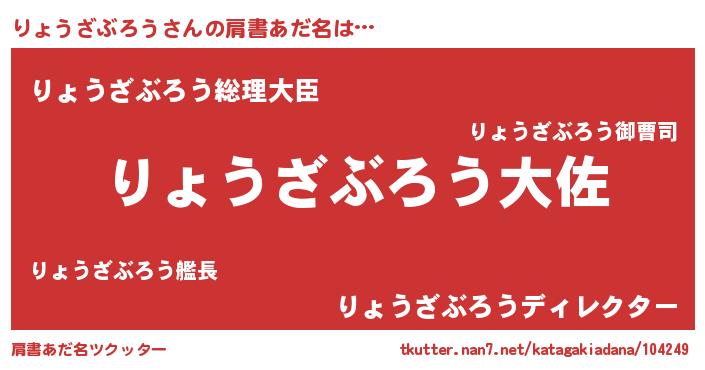 | 男性向けラノベタイトル風あだ名 | 『リョウザブロウスレイヤー』 |