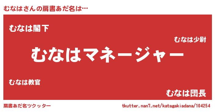 | ヘコむあだ名 | 『むなを』『むなは(笑)』『酢こんぶ』 |