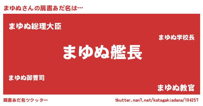 | ファンタジー風あだ名 | 『カークマユラー』『エターナルマユヌー』 |