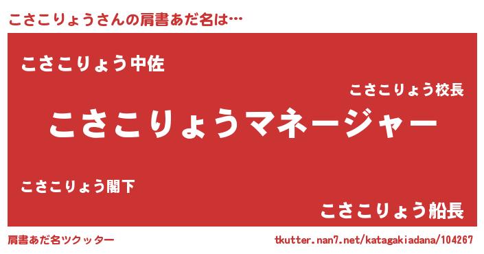 | 男性向けラノベタイトル風あだ名 | 『はたらくこさこりょうさま!』 |