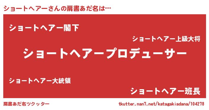 | 男性向けラノベタイトル風あだ名 | 『ショートヘアーに滅ぼされるだけの簡単なお仕事です』 |
