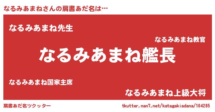 | ヘコむあだ名 | 『なるみあまね(爆)』『なまこ酢』 |