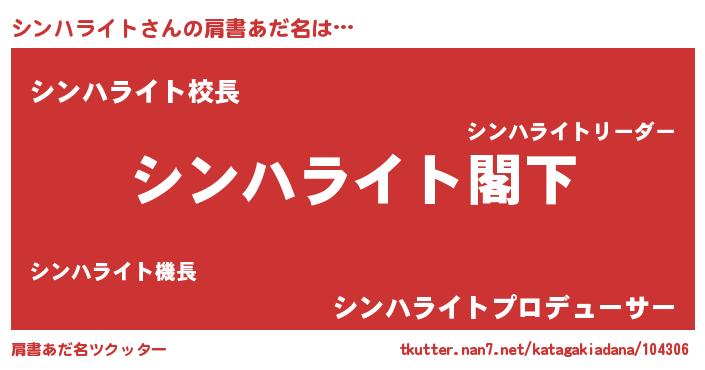 | ヒーロー風カッコイイあだ名 | 『最強戦士シンハライト』『幻影騎士シン』 |