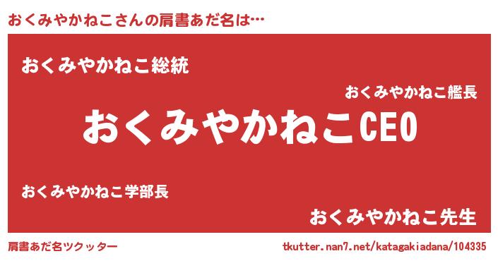 | 男性向けラノベタイトル風あだ名 | 『おくみやかねこの憂鬱』 |