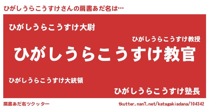 | 意味不明あだ名 | 『住所不定無職ひがしうらこうすけ(65歳)』 |