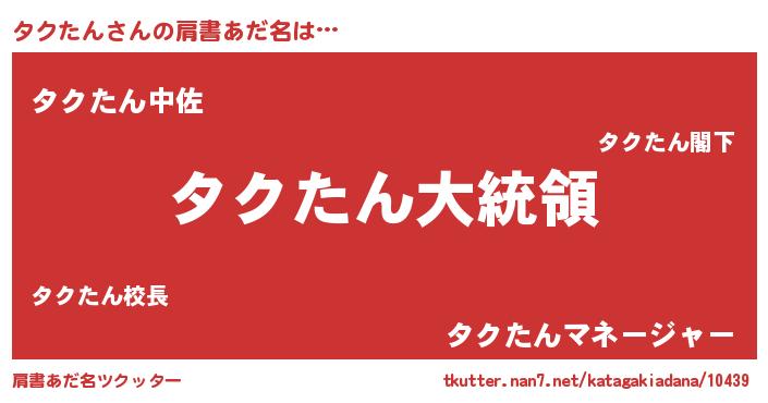 | ポケモン風あだ名 | 『タクタダネ』『タクキング』 |