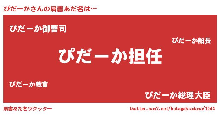 | 男性向けラノベタイトル風あだ名 | 『ぴだーかという概念が存在しない退屈な世界 』 |