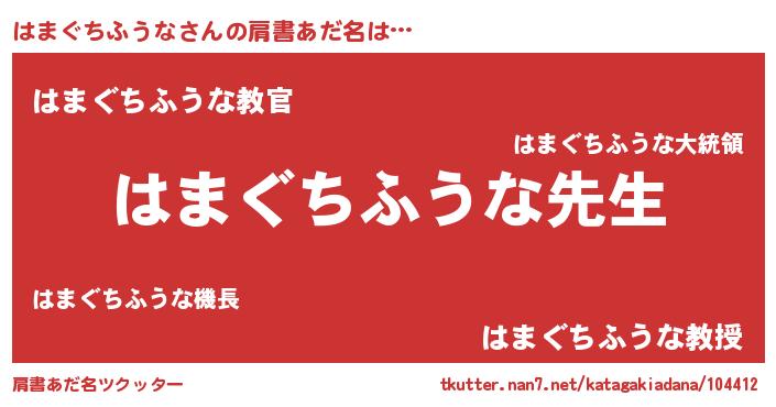 | 女子向けラノベタイトル風あだ名 | 『異世界で失敗しない100のはまぐちふうな』 |