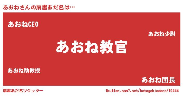 | 男性向けラノベタイトル風あだ名 | 『魔弾の王とあおね』『あおねの憂鬱』 |