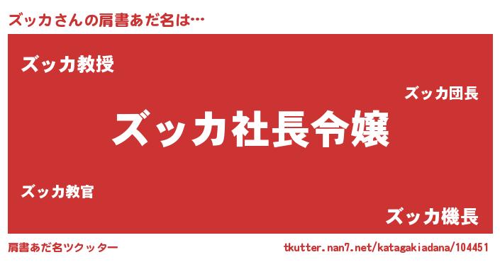 | ヒーロー風カッコイイあだ名 | 『スーパーズッカ』『愛の使者ズッカ』 |