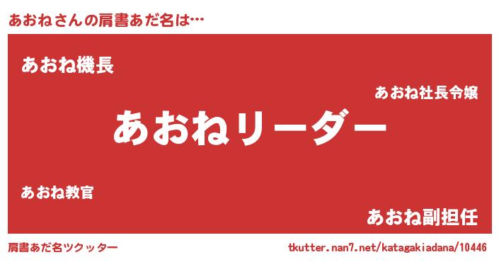 | ヘコむあだ名 | 『あおぷりん』『あおね(苦笑)』 |