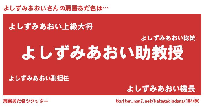 | 女子向けラノベタイトル風あだ名 | 『よしずみあおい恋絵巻』 |