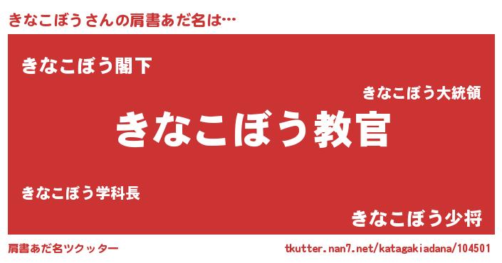| 男性向けラノベタイトル風あだ名 | 『この素晴らしい世界にきなこぼうを!』 |