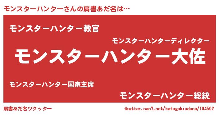 | 欧米人風あだ名 | 『トリンドルモンスターハンター』 |