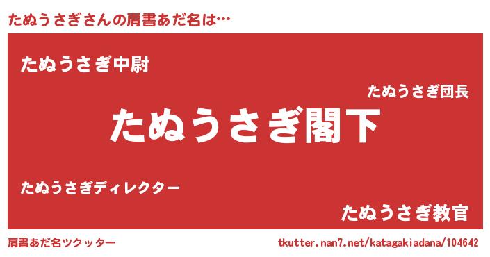 | 意味不明あだ名 | 『自称たぬうさぎ』『永久保存たぬうさぎ』 |