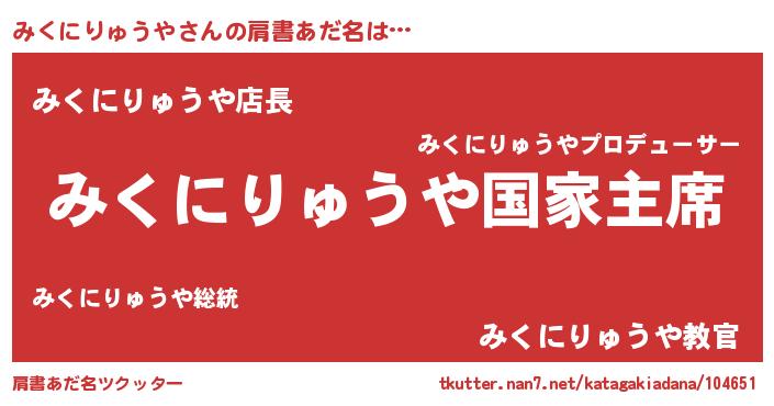 | 意味不明あだ名 | 『みくにりゅうやフォーエバー』 |