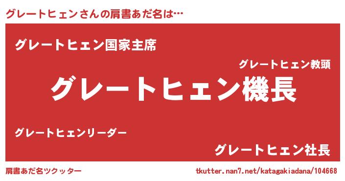 | 意味不明あだ名 | 『グレートヒェンフォーエバー』 |