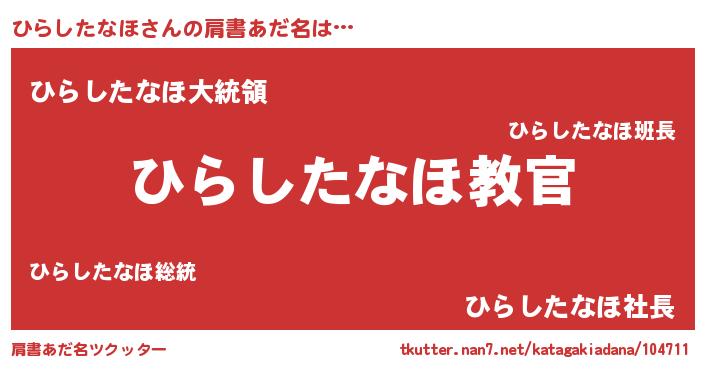 | 男性向けラノベタイトル風あだ名 | 『この素晴らしい世界にひらしたなほを!』 |
