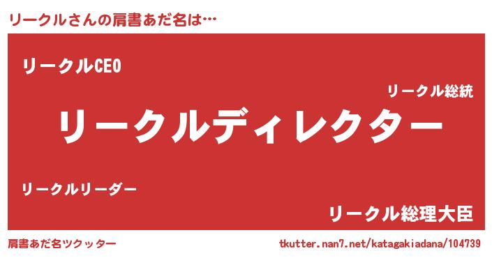 | ヒーロー風カッコイイあだ名 | 『スーパーリークル』『究極戦士リークル』 |