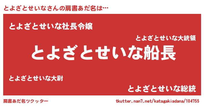 | 欧米人風あだ名 | 『とよざとせいな・ステッグマイヤー』 |