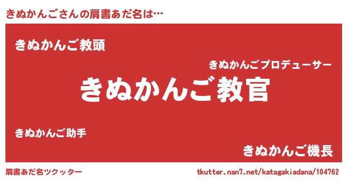 | 男性向けラノベタイトル風あだ名 | 『魔弾の王ときぬかんご』 |