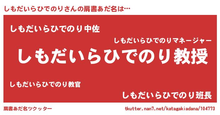 | 男性向けラノベタイトル風あだ名 | 『ノーゲーム・ノーシモダイラヒデノリ』 |