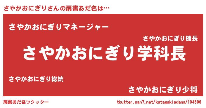 | 男性向けラノベタイトル風あだ名 | 『ノーゲーム・ノーサヤカオニギリ』 |