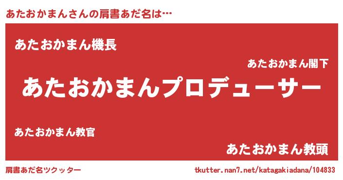 | ヘコむあだ名 | 『あたおかまん(遠い目)』『あたっちょ』 |
