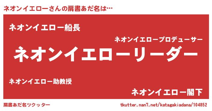| 女子向けラノベタイトル風あだ名 | 『ネオンイエロー様がみてる』 |