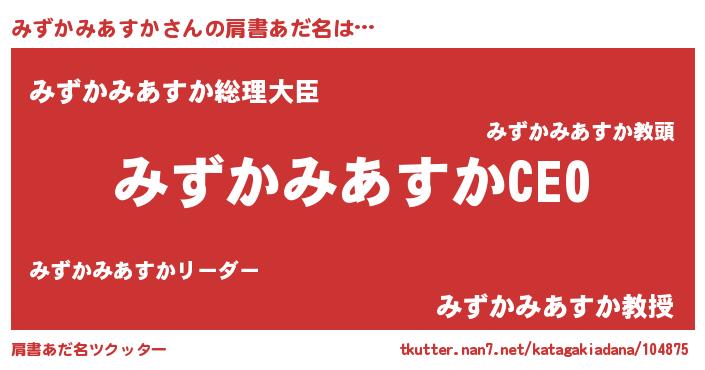 | 男性向けラノベタイトル風あだ名 | 『みずかみあすかの憂鬱』 |
