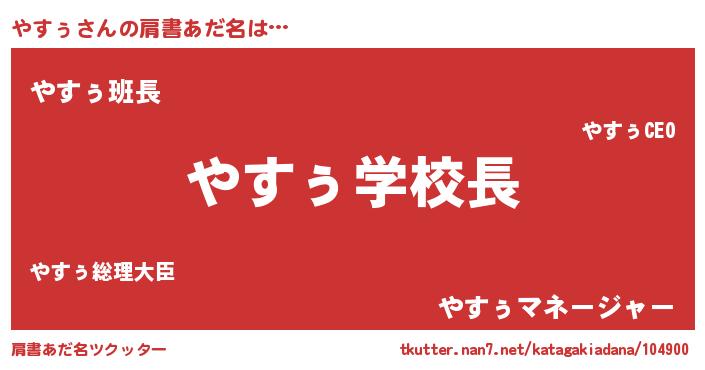 | 欧米人風あだ名 | 『ダニエルやすぅ』『ウサインやすぅ』 |