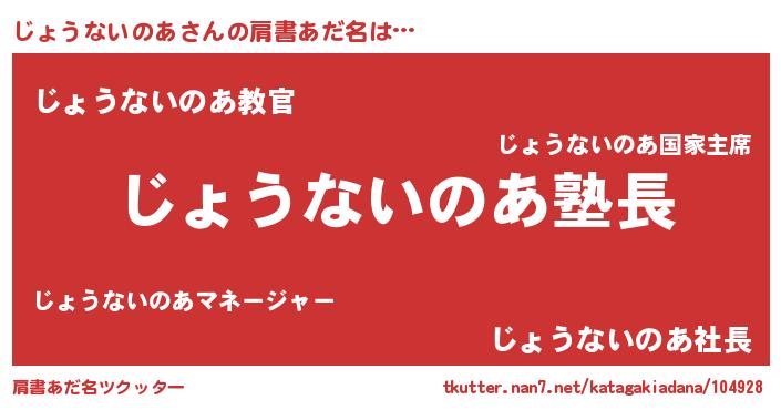 | 意味不明あだ名 | 『とにかく怪しいじょうないのあ』 |