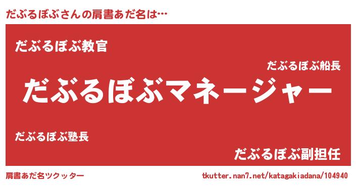 | 男性向けラノベタイトル風あだ名 | 『はたらくだぶるぼぶさま!』 |