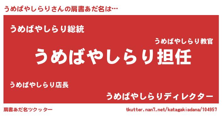 | 胡散臭い通販商品みたいなあだ名 | 『来世でも幸せになれる健康食品…その名も「うめばやしらり」』 |