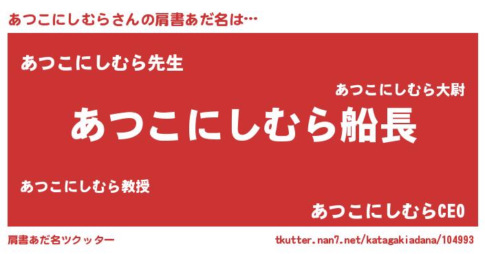 | 意味不明あだ名 | 『永久保存あつこにしむら』 |